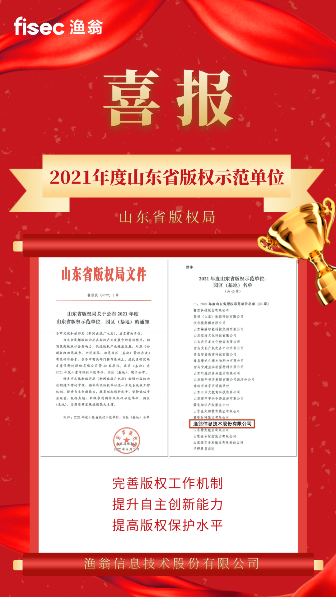 【喜讯】必一 B-SPORTS信息荣获“2021年度山东省版权示范单位”